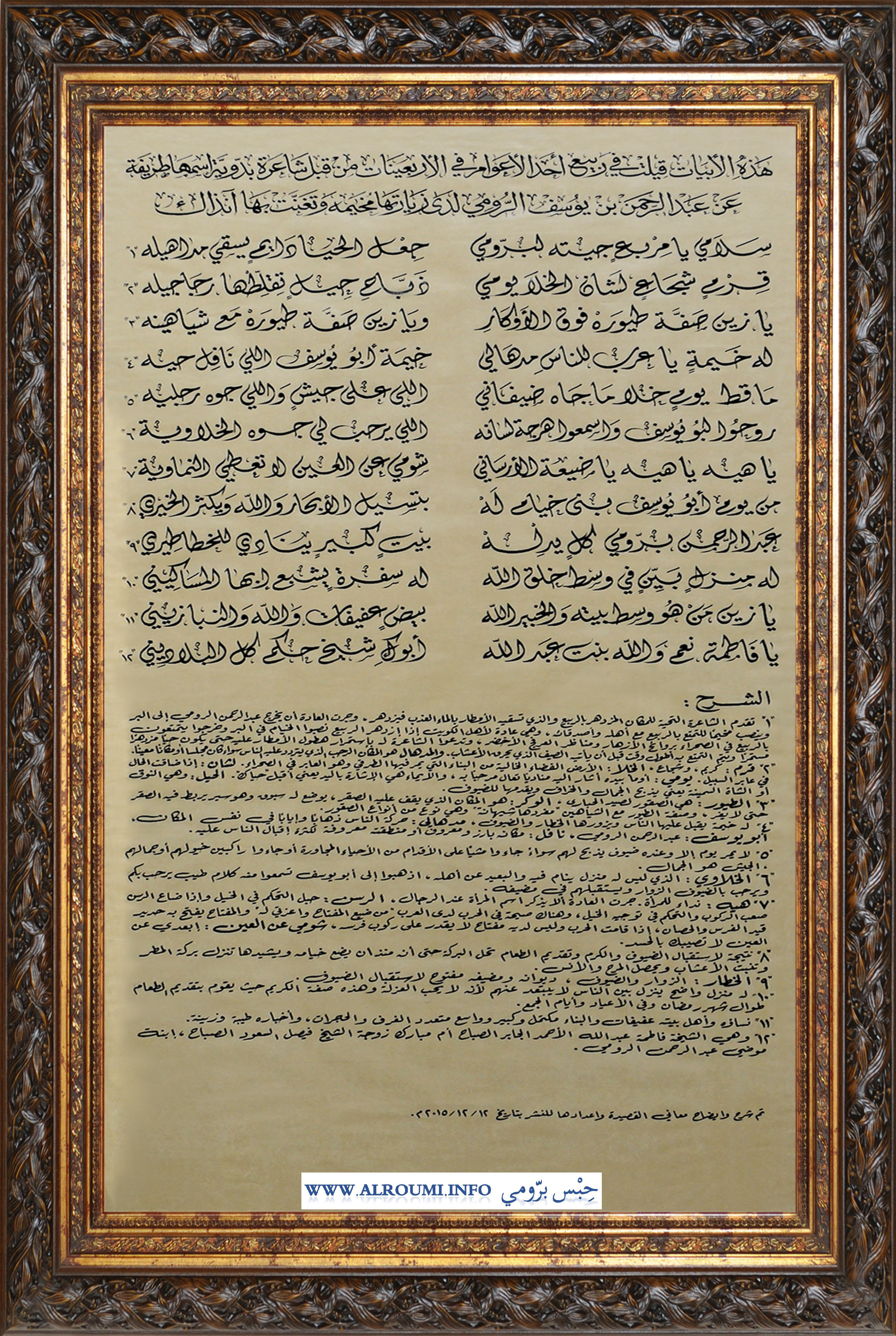 أبيات مع الشعر قيلت في ربيع أحد الأعوام في الأربعينات من قبل شاعرة بدوية إسمها طريفة عن عبد الرحمن يوسف الرومي لدى زيارتها مخيمه وتغنت فيها آنذاك .