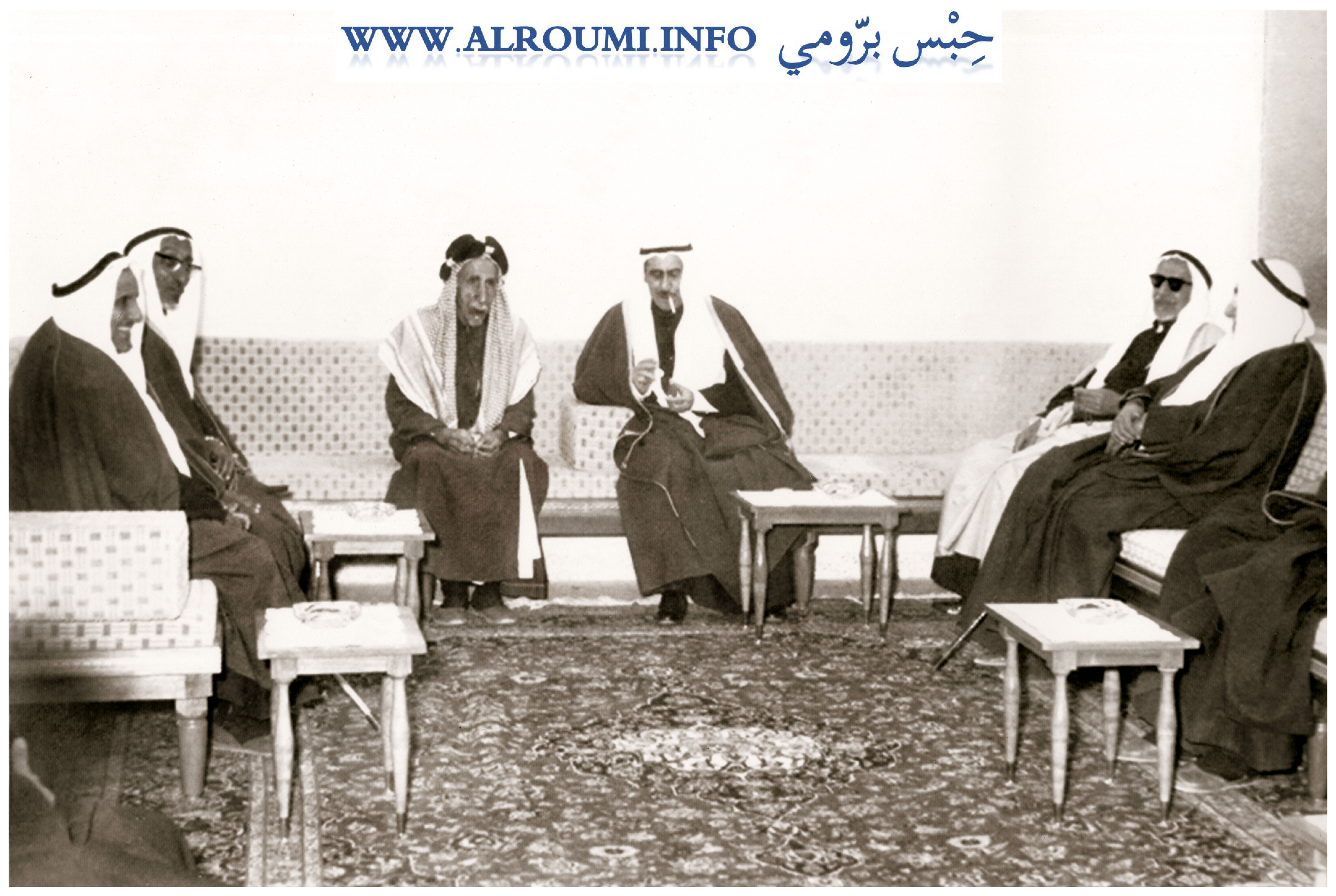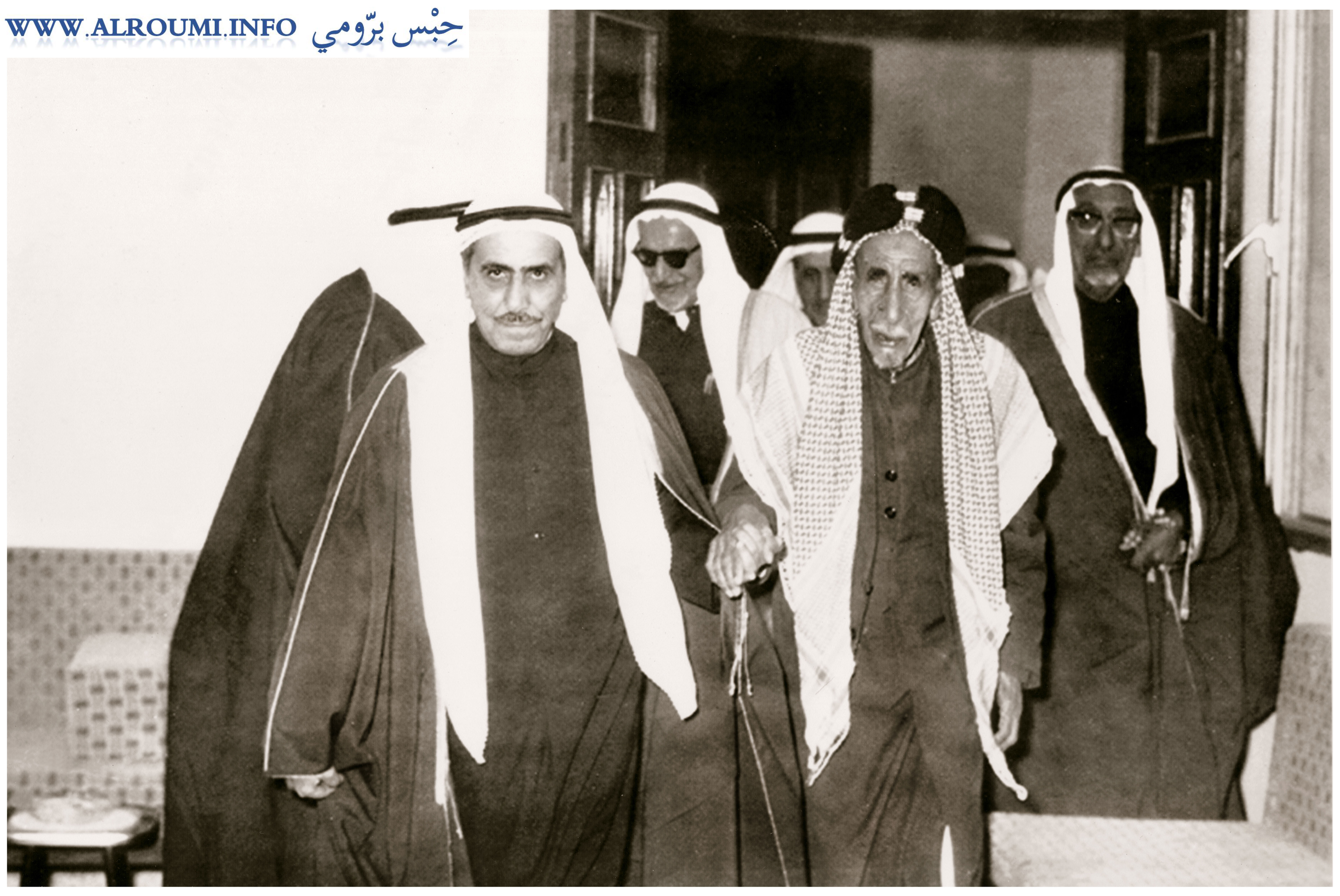 صورة تجمع الأمير الراحل الشيخ صباح السالم الصباح والحاج عبد الرحمن يوسف الرومي طيب الله ثراهما لدى افتتاح ديوان الحاج عبد الرحمن الرومي في السالمية عام 1968